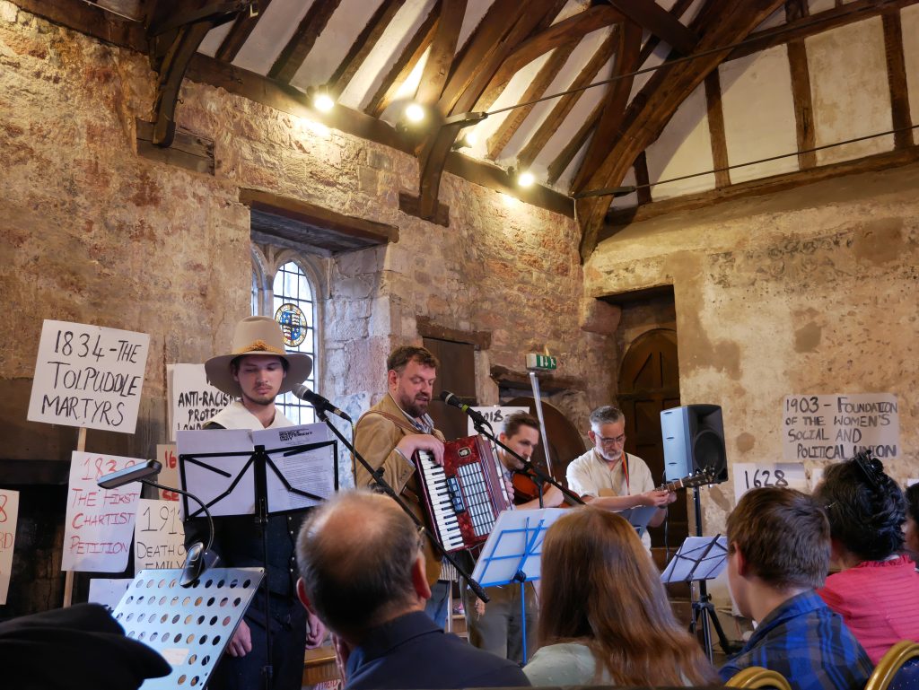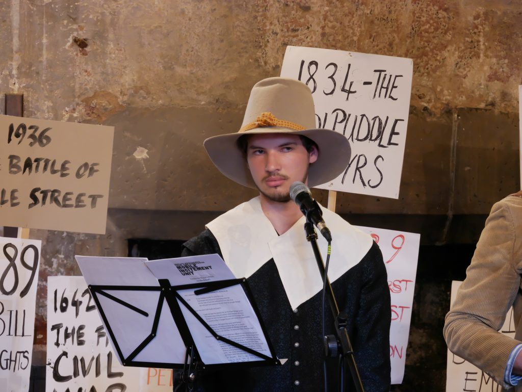 Mobile Incitement – or to give it its full name, Gerrard Winstanley’s True and Righteous Mobile Incitement Unit, is a gig theatre piece made in collaboration with The Black Smock Band – a gay eco-socialist folk band based in Deptford, South-east London. It tells the story of protest in England from the Peasants’ Revolt to the end of the Industrial Revolution, through historical texts, folk songs, and new writing. But what makes it particularly special is that everywhere we take it, we work with local people to make the show truly site-specific, with lots of local stories.